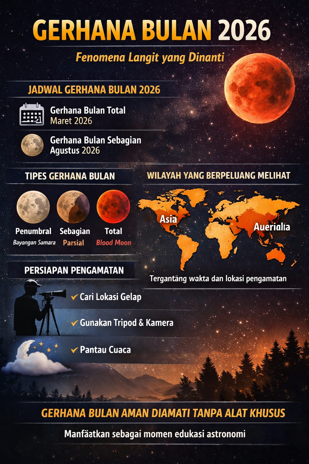 Langit malam akan terus menghadirkan peristiwa menarik. Gerhana bulan 2026 adalah salah satunya—dan kesempatan terbaik selalu datang bagi mereka yang bersiap.
