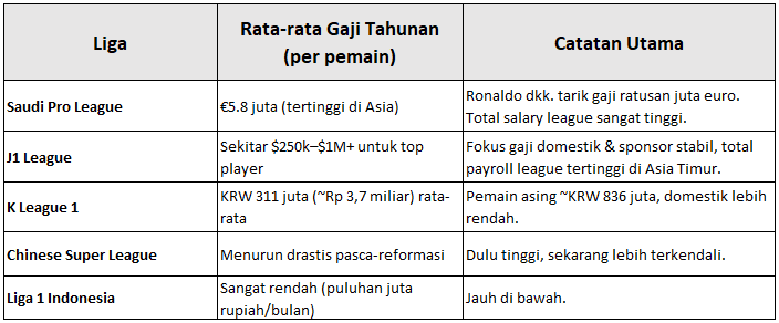 Liga Profesional Saudi unggul di uang, bintang internasional, dan ranking AFC, menjadikannya paling “sexy” dan berpotensi tinggi bagi karier pemain Indonesia. Namun, J-League tetap raja kualitas dan organisasi di Asia, diikuti K-League yang sangat kompetitif.